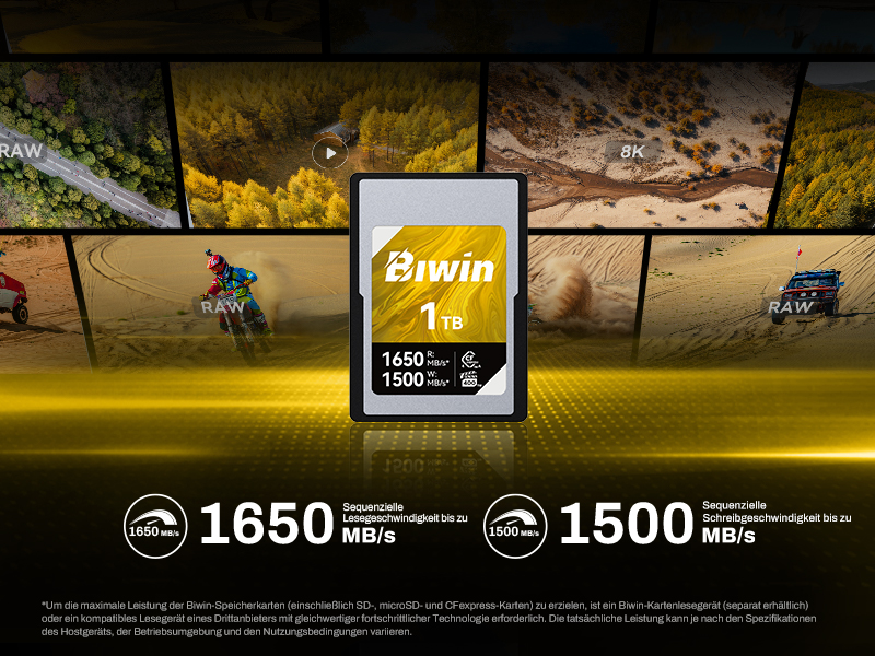 Die Amber CA350 von Biwin liefert einwandfreie 8K-RAW-Videoaufnahmen und ist zukunftssicher für 12K-Kameras. Sie ist perfekt für professionelle Fotografen und Filmemacher geeignet und bietet hohe Geschwindigkeiten und unerschütterliche Zuverlässigkeit für die anspruchsvollsten Aufnahmen. Von filmischen Videos bis hin zu hochauflösenden Bildern – diese Karte stellt sicher, dass Ihre Ausrüstung mit Ihrer kreativen Vision Schritt hält – heute und auch in Zukunft.