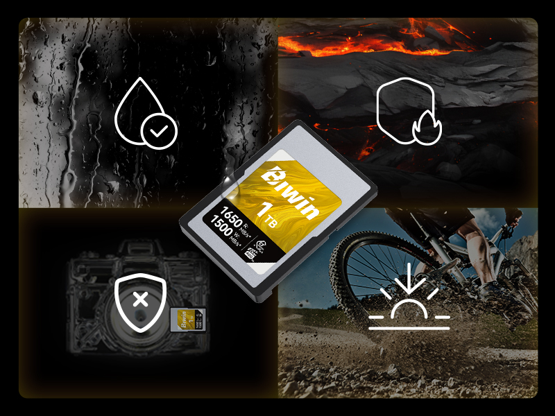 Mit ihrem robusten Schutz gegen extreme Temperaturen, Stöße, Staub und sogar Röntgenstrahlen hält die Amber CA350 von Biwin den Herausforderungen extremer Bedingungen stand und sorgt dafür, dass Ihre Fotos und Videos sicher und leicht zugänglich sind. Vertrauen Sie der CA350, die auch das Unerwartete übersteht, damit Sie sich ohne Sorgen auf Ihr Handwerk konzentrieren können.