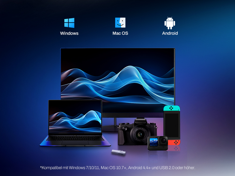Biwin RC210 ist kompatibel mit Windows 7, 10 und 11, Mac OS 10.7 und höher sowie Android 11+. Es unterstützt auch Geräte mit USB 2.0 oder neueren Schnittstellen. Diese Kompatibilität stellt sicher, dass Sie Biwin RC210 mit einer Vielzahl von Laptops, Desktops und mobilen Geräten verwenden können – eine bequeme Lösung für alle Ihre Datenübertragungsanforderungen.