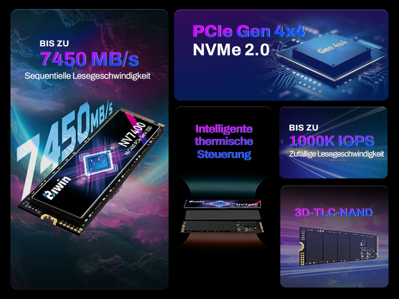 • Sequential Lesegeschwindigkeiten bis zu 7450 MB/s