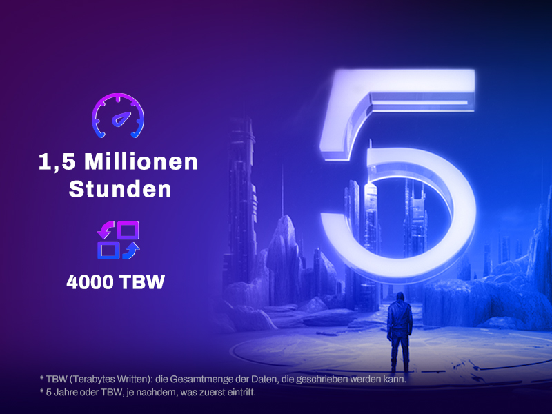Die hohe TBW-Bewertung (Total Bytes Written) der NV7400 steht für Langlebigkeit und dauerhafte Qualität. Sie verfügt über eine beeindruckende MTBF (Mean Time Between Failures) von bis zu 1,5 Millionen Stunden, und die 4TB-Version weist eine TBW-Bewertung von bis zu 4000 auf. Mit einer beschränkten 5-Jahres-Garantie für den kostenlosen Ersatzservice bietet die NV7400 den Benutzern eine langlebige und zuverlässige Datenspeicherung.