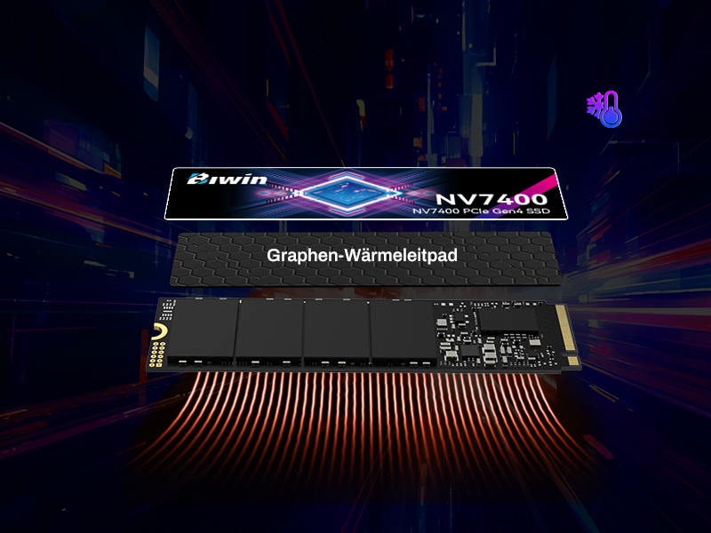 Die NV7400 verfügt über einen intelligenten Temperaturkontrollalgorithmus, der die Betriebstemperatur dynamisch reguliert. Gepaart mit einem 0,5 mm starken Graphen-Wärmeleitpad zur effektiven Wärmeableitung bietet die NV7400 eine hervorragende Temperaturkontrolle, die auch bei hoher Belastung eine stabile Leistung gewährleistet.