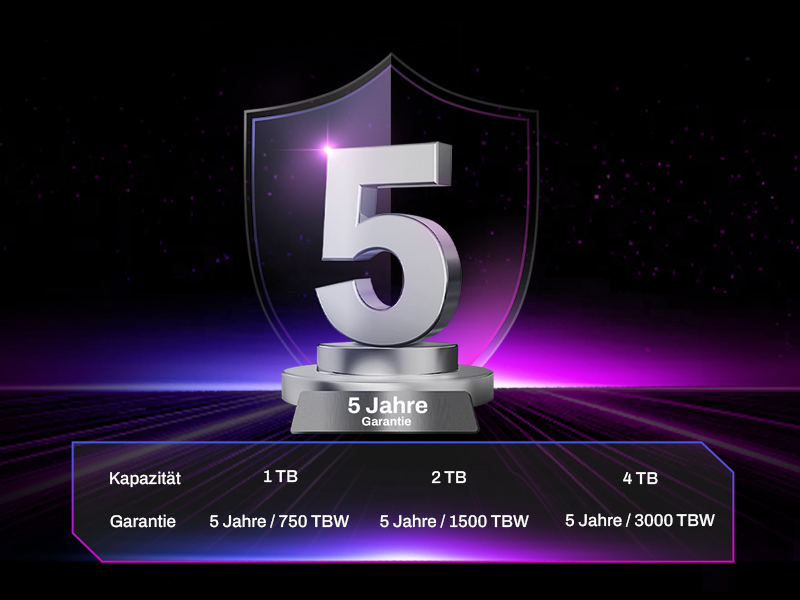 Die Black Opal X570H PRO wurde für langfristige Zuverlässigkeit entwickelt und verfügt über eine 5-Jahres-Garantie sowie eine hervorragende TBW-Bewertung von bis zu 3000 TBW. Vom Hochleistungscontroller bis zum langlebigen NAND-Flash ist jede Komponente während ihrer gesamten Lebensdauer auf Spitzenleistung ausgelegt. Die robuste Biwin X570H PRO wurde strengen Qualitätsstandards unterzogen und garantiert jahrelange erstklassige Leistung.