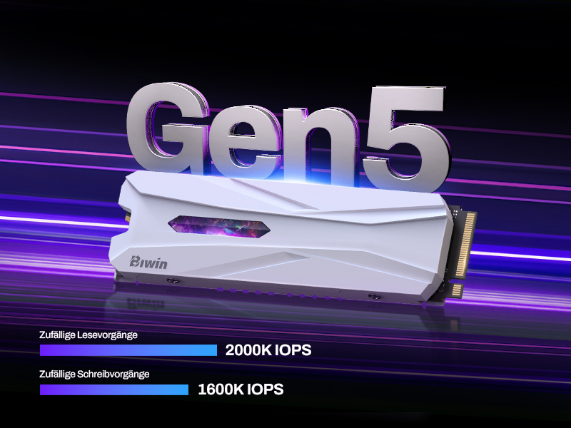 Dank PCIe Gen5 ×4 und NVMe 2.0 erreicht die Biwin Black Opal X570H PRO SSD Lesegeschwindigkeiten von bis zu 14.000 MB/s – doppelt so schnell wie PCIe 4.0 und viermal so schnell wie PCIe 3.0. Diese bahnbrechende Geschwindigkeit ermöglicht schnellere Datenübertragungen, reduziert die Ladezeiten deutlich und verbessert die allgemeine Systemreaktion. Erleben Sie gesteigerte Produktivität und verbesserte Effizienz mit Speicher, der selbst mit anspruchsvollsten Spielen oder Workflows Schritt hält.